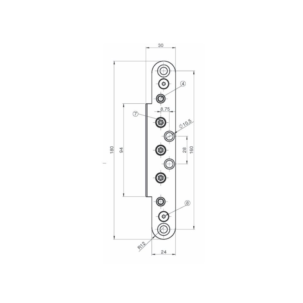 Wykonana ze stali nierdzewnej kieszeń dedykowana do montażu zawiasów o maksymalnej wadze 200 kg na ościeżnicy drewnianej.