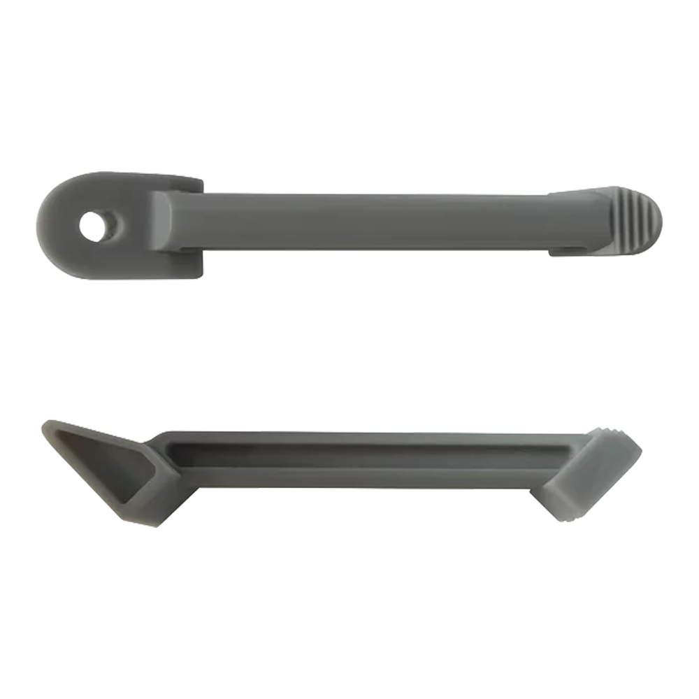 Przyrząd do demontażu nakładek na zawiasy wpuszczane marki Krona Koblenz. Umożliwia nie tylko zdjęcie folii z nakładek, ale także samych nakładek z ramion zawiasu. Ułatwia także zastosowanie aluminiowych nakładek na zawiasach, a w przypadku wygięcia wypustek nakładki, umożliwia ich wyprostowanie (rys. 5). Poniższe grafiki prezentują sposób użycia przyrządu.