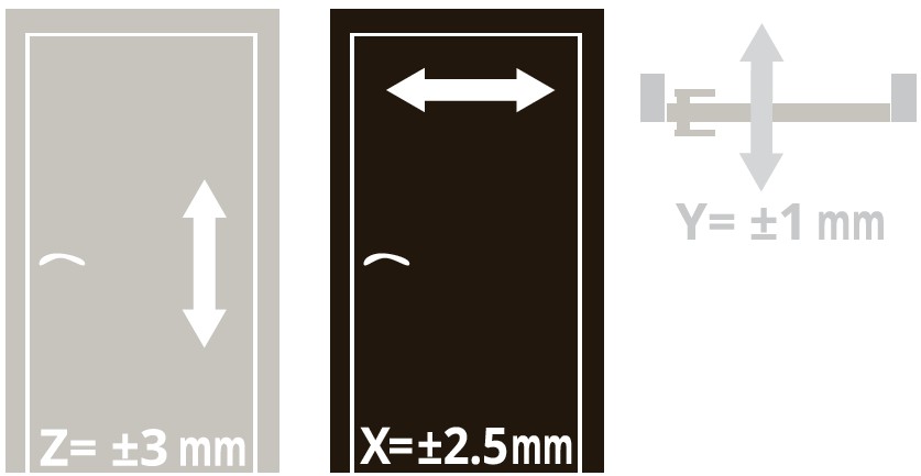 Regulacja zawiasu w trzech płaszczyznach (poziomej / pionowej / głębokości) jest wykonywana za pomocą zwykłego klucza imbusowego.
