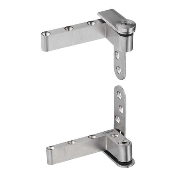 Jednokierunkowy zawias składający się z części górnej i części dolnej. Wykonany ze stali nierdzewnej AISI 304 i dostępny w wykończeniu w kolorze srebrnym. Odpowiedni do zastosowania w drzwiach drewnianych typu pivot o maksymalnej wadze 40 kg i grubości skrzydła 35-45 mm.