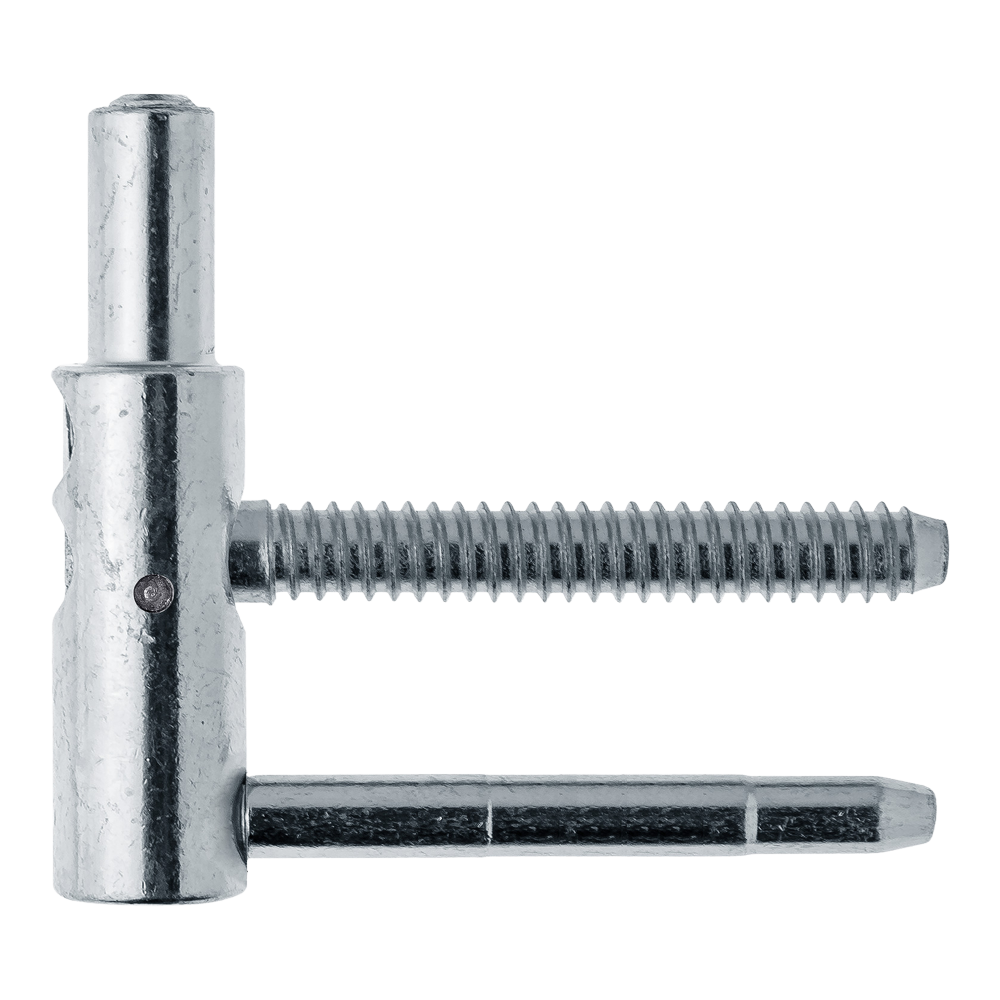 Dolna część zawiasu Exacta o średnicy 16 mm wyposażona w dwa trzpienie o długości 57 mm. Odpowiednia do zastosowania w połączeniu z górną częścią na drzwiach drewnianych przylgowych o maksymalnej wadze 100 kg. Wykonana ze stali, posiada wykończenie H5 - galwanizowane na biało 12μ.