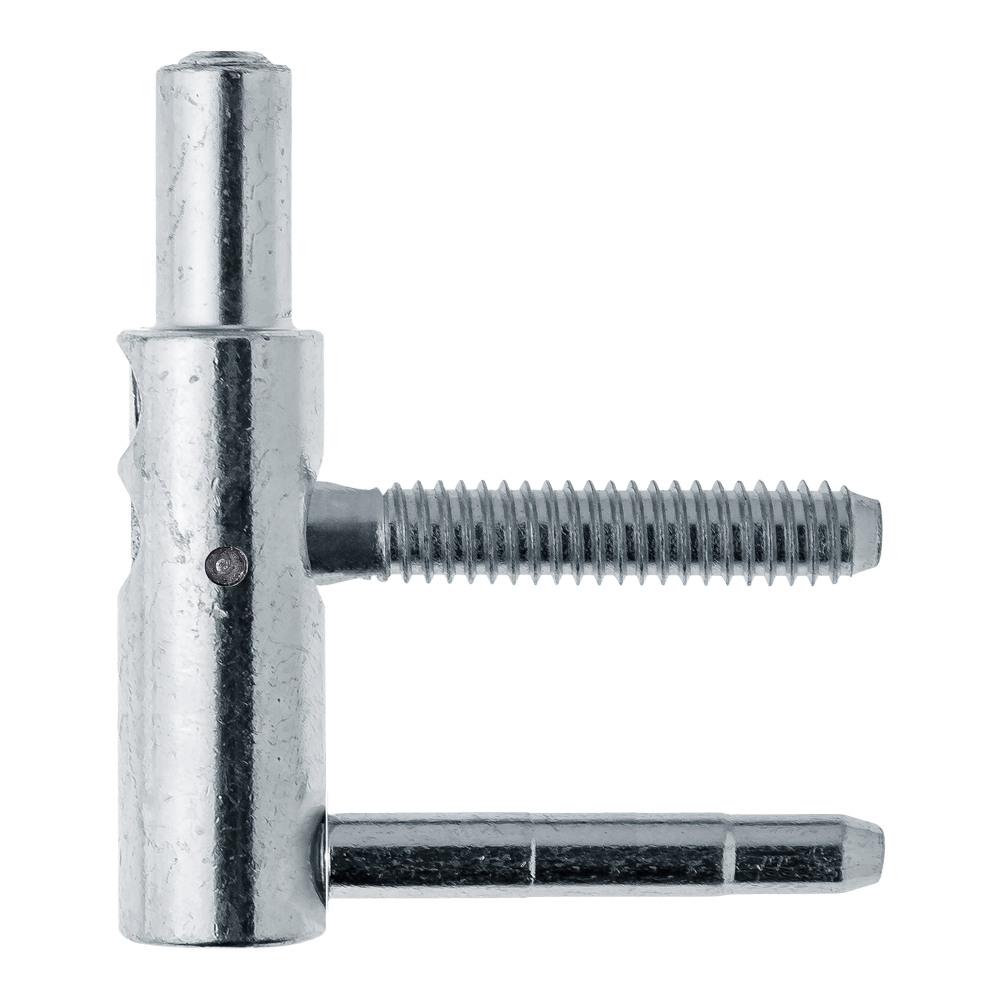 Dolna część zawiasu Exacta o średnicy 20 mm wyposażona w dwa trzpienie o długości 55 mm. Dedykowana do zastosowania w połączeniu z górną częścią na drewnianych drzwiach przylgowych o maksymalnej wadze 120 kg. Jest wykonana ze stali i posiada wykończenie H5 - galwanizowane na biało 12μ.