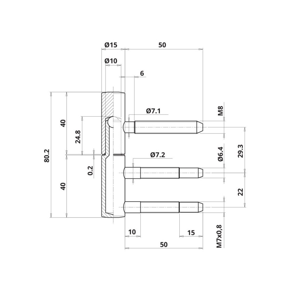 GÓRNA CZĘŚĆ ZAWIASU OT 100 150 M8x50 mm STAL NIERDZEWNA MATOWA