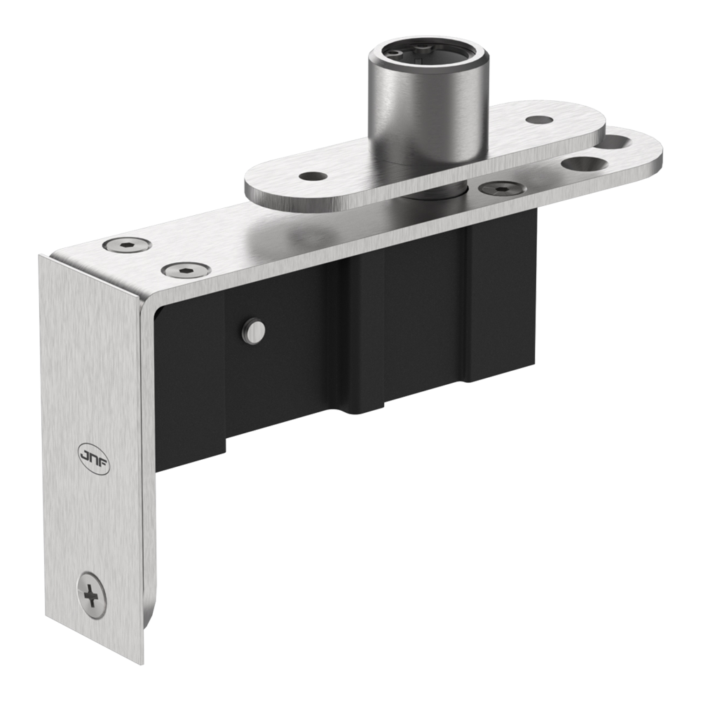 Górny zawias do drzwi typu pivot o grubości skrzydła 35-45 mm i maksymalnej wadze 45 kg. Odpowiedni do zamontowania w drzwiach wewnętrznych wraz z modelem zawiasu IN.05.199.