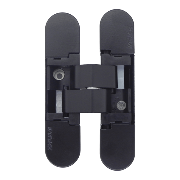 Zawias wpuszczany z możliwością regulacji położenia skrzydła w trzech płaszczyznach (poziomej, pionowej oraz głębokości). Dedykowany do drewnianych drzwi bezprzylgowych, zamontowanych na ościeżnicy drewnianej, aluminiowej lub stalowej. Kąt otwarcia zawiasu wynosi 180°.