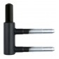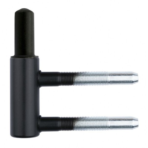 Dolna część zawiasu OT 101 o średnicy 15 mm z nylonem dedykowana do zastosowania wraz z górną częścią zawiasu OT 100 na drzwiach przylgowych wykonanych z drewna. Została wyposażona w dwa trzpienie o długości 50 mm. Występuje w wykończeniu lakierowanym na czarno.