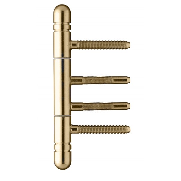 Zawias OT 343 o średnicy 15 mm został wykonany ze stali i wyposażony w cztery trzpienie, każdy z nich ma długość 50 mm. Jest dedykowany do drewnianych drzwi przylgowych. Posiada wykończenie pozłacane.