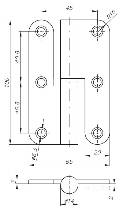 - Zawias przykręcany rozłączny o wymiarach 100x65 mm i średnicy 14 mm.