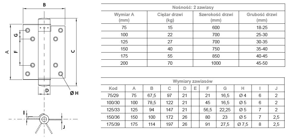 - Zawias sprężynowy jednokierunkowy przeznaczony do drzwi wahadłowych.