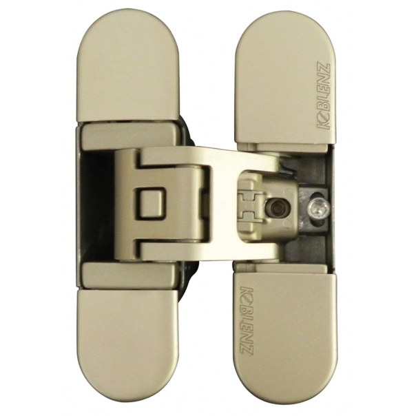 Zawias wpuszczany z możliwością regulacji w trzech płaszczyznach (poziomej, pionowej oraz głębokości) dedykowany do drzwi drewnianych bezprzylgowych.