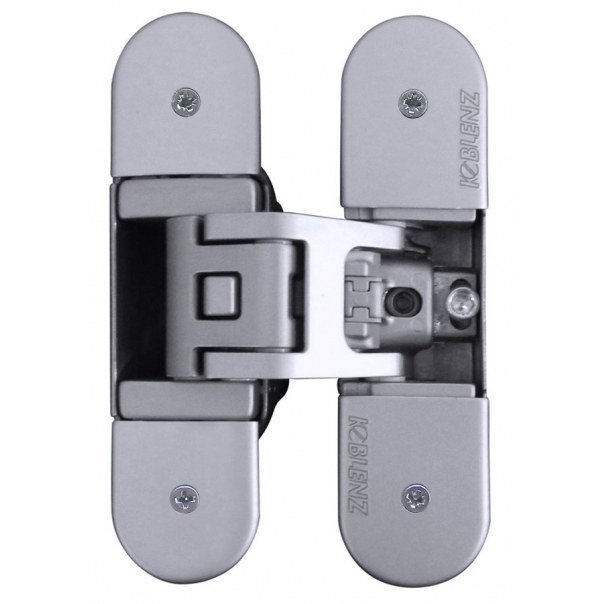 Zawias wpuszczany z możliwością regulacji położenia skrzydła w trzech płaszczyznach (poziomej, pionowej oraz głębokości), dedykowany do drzwi drewnianych bezprzylgowych.