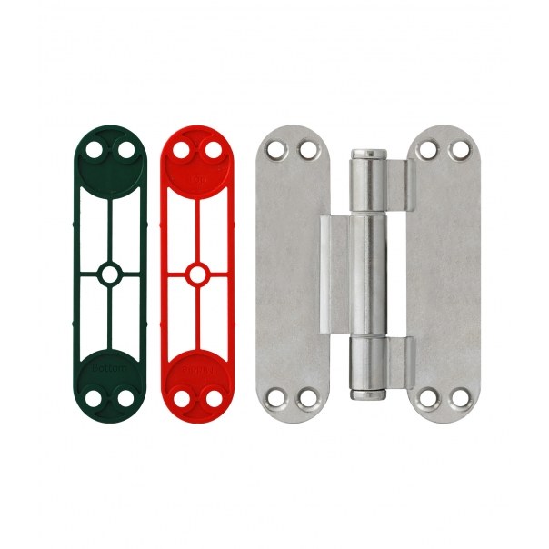 ZESTAW 3 ZAWIASÓW OT 335 150 Z PŁYTKĄ INVISACTA [40 KG], NIKLOWANYCH, PODKŁADKI ZIELONE (4 SZT.), CZERWONE (4 SZT.), WKRĘTY (24 SZT.)