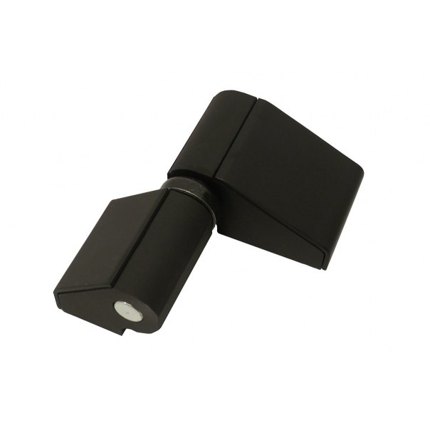 Przykręcany zawias dwuczęściowy o średnicy 12 mm. Jest wykonany ze stali i występuje w wykończeniu lakierowanym czarnym (RAL 9005).