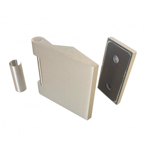 Część skrzydłowa trzyczęściowego zawiasu dedykowanego do zastosowania w drzwiach szklanych. Odpowiednia do tafli szklanej o grubości 8/10/12 mm. Jest dostępna w wykończeniu aluminiowym srebrnym.