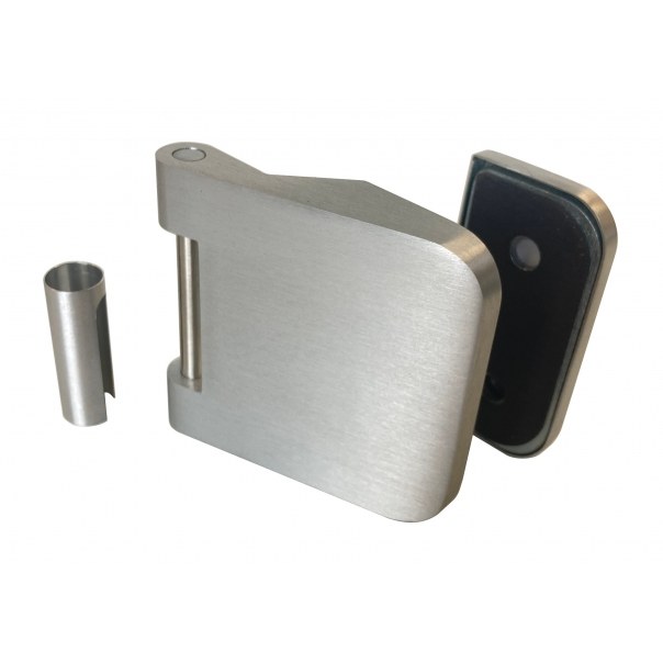 Część skrzydłowa trzyczęściowego zawiasu dedykowanego do zastosowania w drzwiach szklanych. Odpowiednia do tafli szklanej o grubości 8/10/12 mm. Jest dostępna w wykończeniu aluminiowym srebrnym.