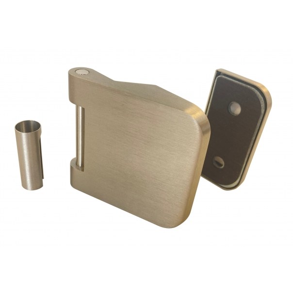 Część skrzydłowa trzyczęściowego zawiasu dedykowanego do zastosowania w drzwiach szklanych. Odpowiednia do tafli szklanej o grubości 8/10/12 mm.