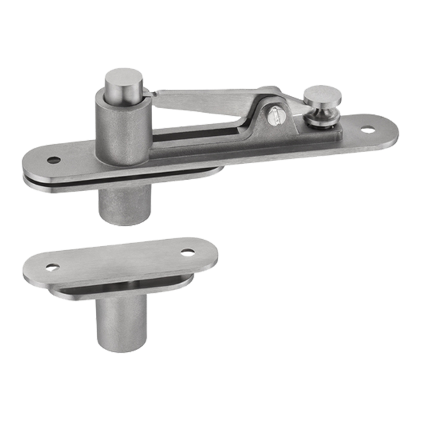 Zawias wpuszczany składający się z części górnej oraz z części dolnej. Część górna posiada ramię obrotowe, a część dolna łożysko kulkowe. Średnica sworznia górnej części zawiasu wynosi 15 mm. Zawias jest wykonany ze stali nierdzewnej i występuje w wykończeniu matowym.