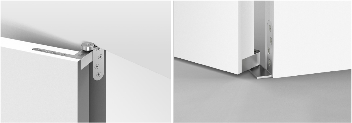 Poniższe rysunki przedstawiają prawidłowy sposób montażu zawiasu. Instalacja zawiasu w ościeżnicy nie wymaga wykonywania otworów w podłodze ani suficie.