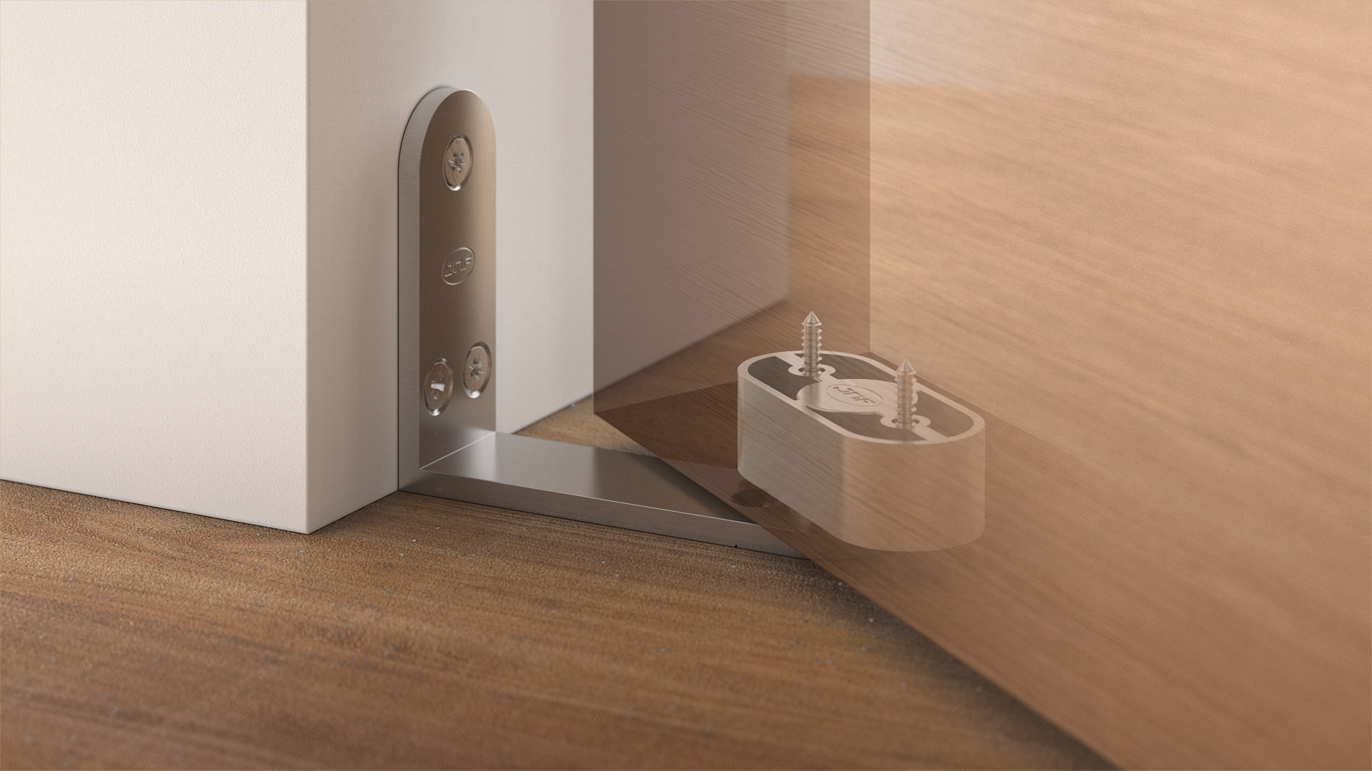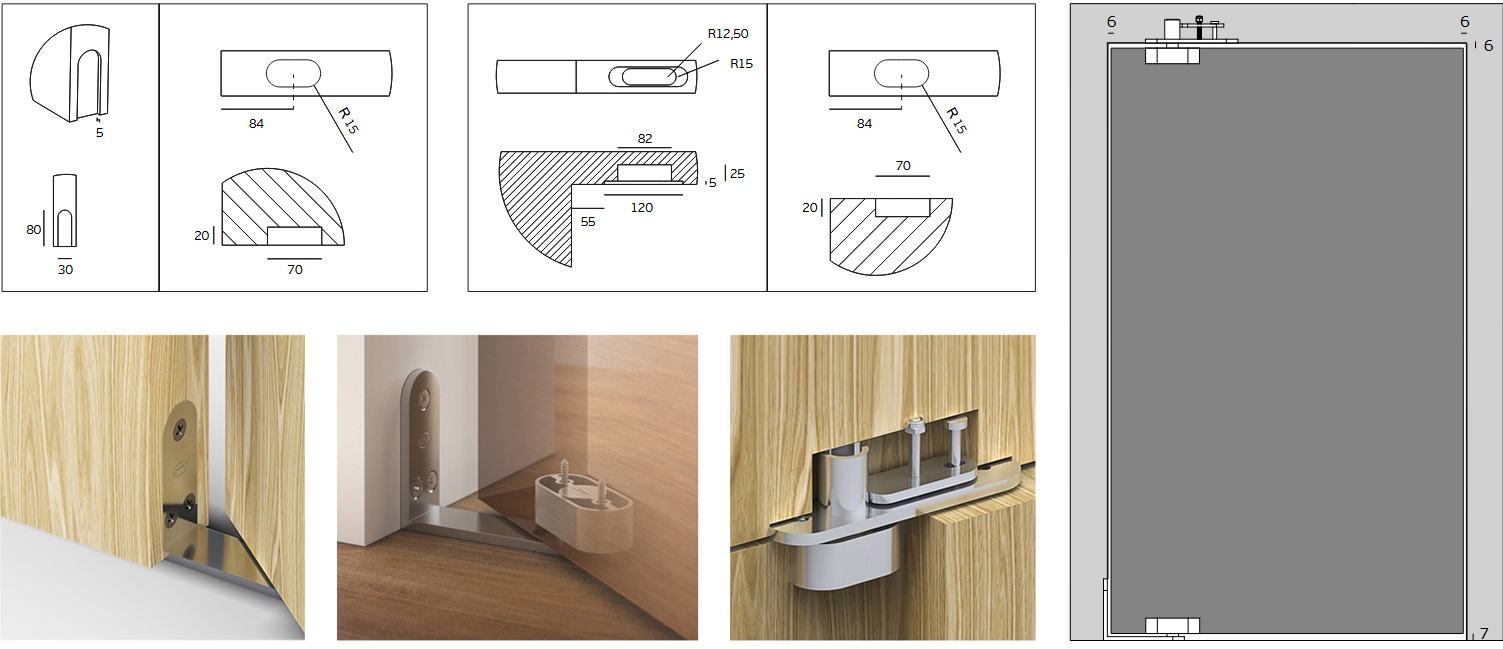 Zawias składający się z części górnej i części dolnej. Wykonany ze stali nierdzewnej oraz dostępny w wykończeniu matowym. Odpowiedni do zastosowania w drzwiach drewnianych typu pivot. Dostarczany wraz z akcesoriami montażowymi.