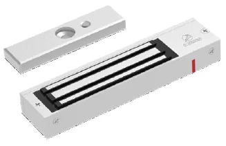 Zwora elektromagnetyczna wielonapięciowa 12/24 VDC z siłą trzymającą 180 kg. Odpowiednia do montażu nawierzchniowego.