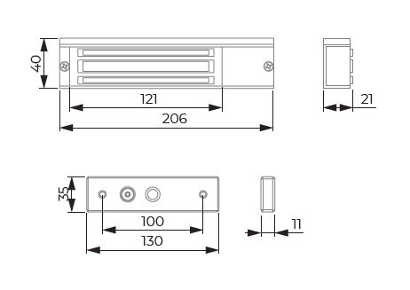 Zwora elektromagnetyczna wielonapięciowa 12/24 VDC z siłą trzymającą 180 kg. Odpowiednia do montażu nawierzchniowego.