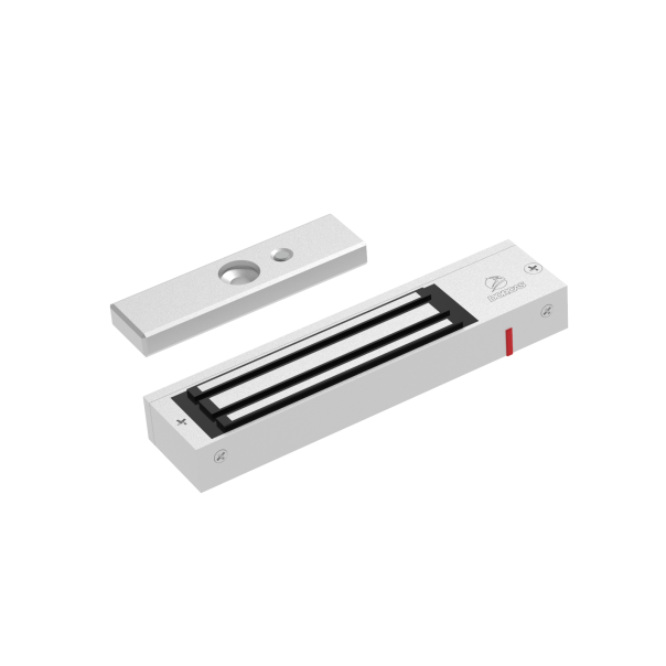 Zwora elektromagnetyczna wielonapięciowa 12/24 VDC z siłą trzymającą 180 kg. Odpowiednia do montażu nawierzchniowego.